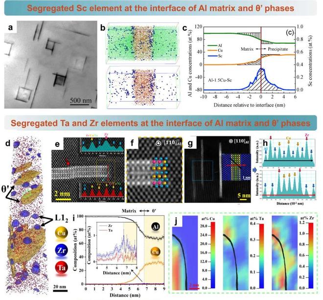 第二相在维持合金高强度方面起着重要作用,但其高温粗化现象是导致高温下微观结构不稳定的主因。溶质原子在界面处的偏析会阻碍析出相与基体界面处的原子迁移,这不仅能增强强化相的热稳定性,还能使铝合金承受更高工作温度。