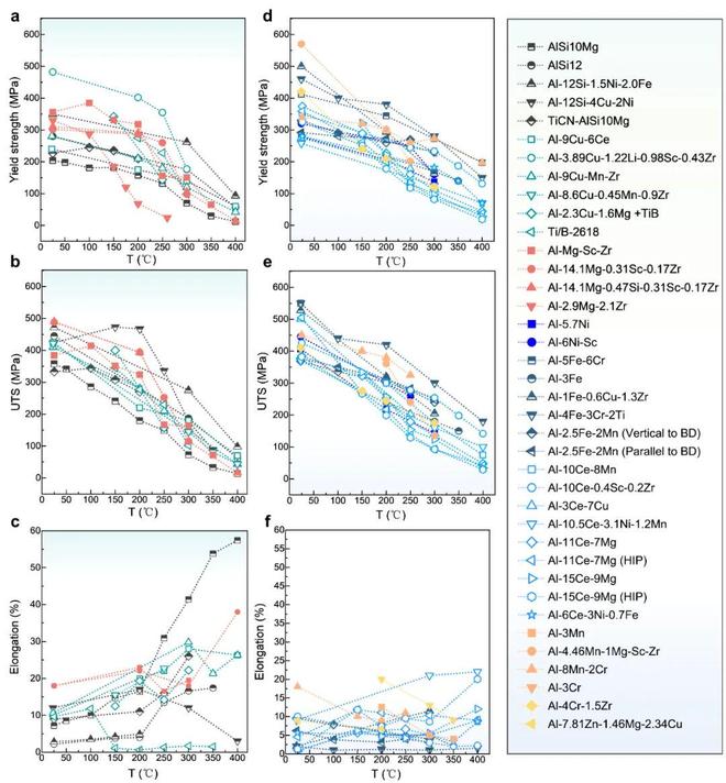 本文总结了目前报道的耐热铝合金在常温及高温下的力学性能,为后续耐热铝合金的开发提供了全面的性能数据库。