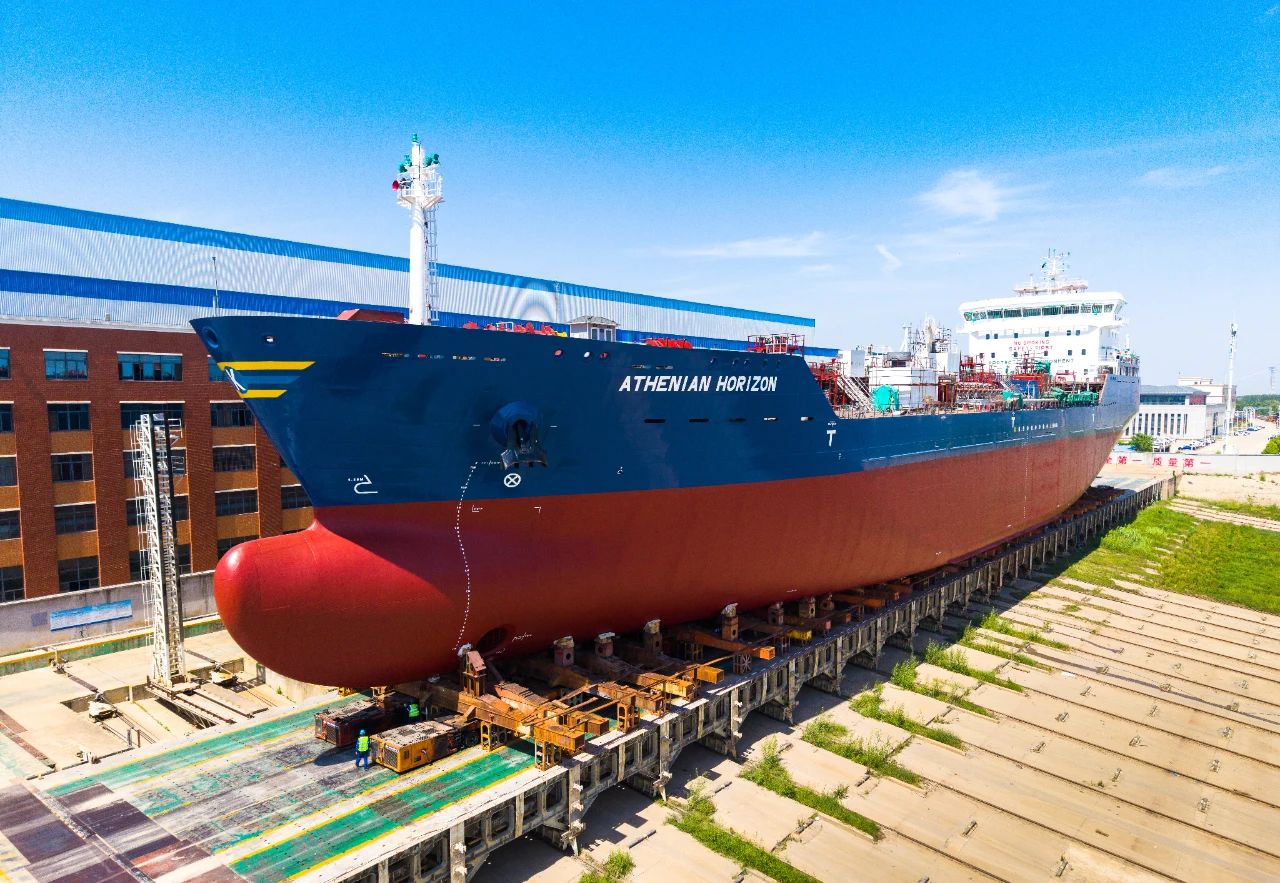 5月13日,由中船集团武昌造船建造的18500DWT成品油/化学品船2号船顺利下水,标志着该船正式转入码头系泊试验阶段。同日,武昌造船建造的 25900DWT双相不锈钢化学品船1号船顺利实现上船台节点,标志着该船正式转入船台搭载阶段。
