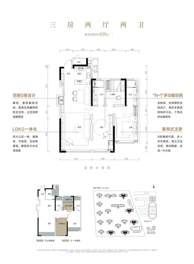 长沙首个S墙设计,4.3m客厅可变7.3m大横厅,在108㎡实现实际享受的空间感与舒适度,堪比以往的120㎡+。