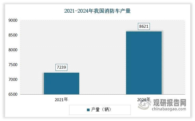 与此同时,得益于国内消防企业不断加强技术投入和提升产品技术含量,近年来我国消防装备自主研发能力持续提升。以消防车研发为例,徐工集团研发的 DG101 登高平台消防车再度刷新了亚洲消防车最高米数纪录,突破了变厚度异形截面臂架技术等核心技术,性能指标达到国际先进水平;三一重工研制出全球首创大跨度举高喷射消防车、破拆消防车等装备,破解了高大空间建筑灭火救援难题,成功入选 2024 年安全应急装备应用推广典型案例。从产量来看,我国消防车产量从2021年的7239辆增长到了2024年的8621辆左右。从进口数据来看,我国消防车进口数量由2020年的143辆降低至2023年的32 辆。